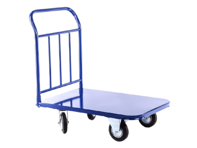 Наиболее популярная разновидность. Именно на её базе делаются остальные модели, в этом можно убедиться, сравнивая фотографии. Каркас – сочетание круглой и профильной трубы, опорная часть – лист металла. Подразумевает крепление промышленных (нередко и пневматических) колес с площадкой. Штатно – два поворотных и неповоротных, реже – все поворачивающиеся. Для удобства маневрирования лучше поставить ближе к себе именно те колесики, которые вертятся. В зависимости от задач, максимальной грузоподъемности, поверхности, по которой надо будет перемещаться, надо подобрать соответствующий диаметр колесных опор. Полимерная порошковая окраска, цвет по технологии производителя /желанию заказчика/ может меняться.