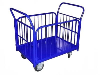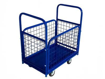 Название говорит само за себя – бортики полноценные, сделаны из трубы. Если требуется, легко снимаются. Расширяет перечень товаров, которые можно безопасно перевозить. В отличие от тележки со съемными сетчатыми бортами, эта выдерживает более высокое давление на борта. Размер груза должен быть не менее 100 мм. Для удобного управления оборудована двумя ручками, можно перевозить по принципу «тяни-толкай».