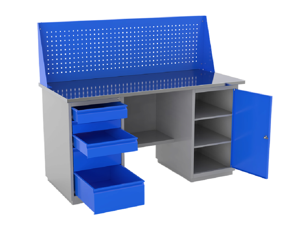 В конце хочу сказать, что все из описанных верстаков могут комплектоваться экранами с навесными аксессуарами, например, полками, держателями для ключей, отвёрток, бит и т. п. В зависимости от производителя меняются характеристики, стоимость и внешний вид металлических верстаков. У вас всегда есть возможность выбора!