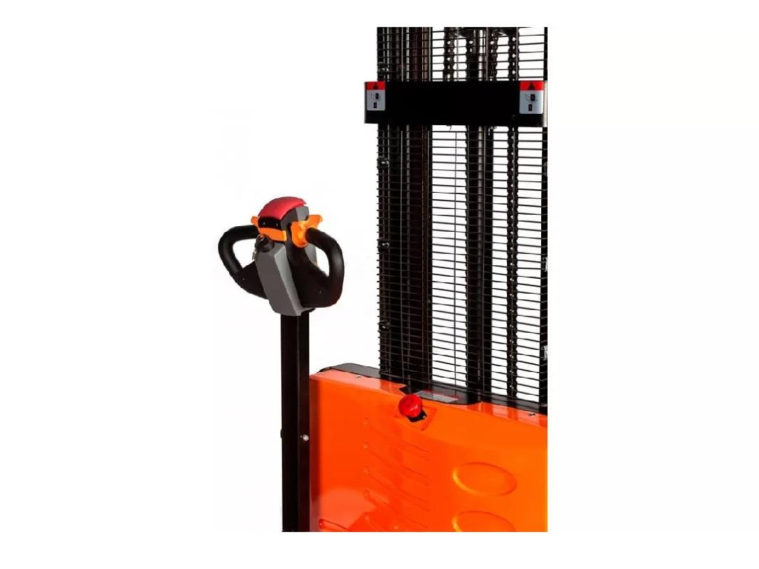 Незаменимая техника на складах с высокой интенсивностью работы, а также в тех случаях, когда необходимо перемещать грузы на большие дистанции. Механизм подъёма-опускания также осуществляется благодаря электрическому двигателю. Оператор прилагает минимум усилий для управления с помощью кнопок и рычагов на ручке. Это повышает производительность труда и облегчает разгрузочно-погрузочные манипуляции. Мощная подъёмная станция и жёсткие вилы создают комфортный подъём груза. Данная модель имеет прочные полиуретановые колёса, которые не оставляют следов на поверхности. Диаметр подвилочных колес 80x70 мм, рулевое колесо имеет стандартный диаметр для такой небольшой техники в 210x70 мм.