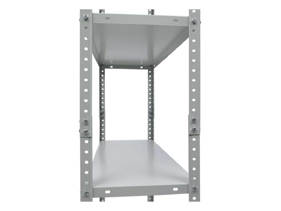 Процесс монтажа отличается высокой скоростью и простотой, благодаря использованию болтовых соединений с гайками для крепления стоек и полок. Завальцованные кромки полок и ребер стоек значительно повышают безопасность конструкции, ее несущую способность и общую надежность.