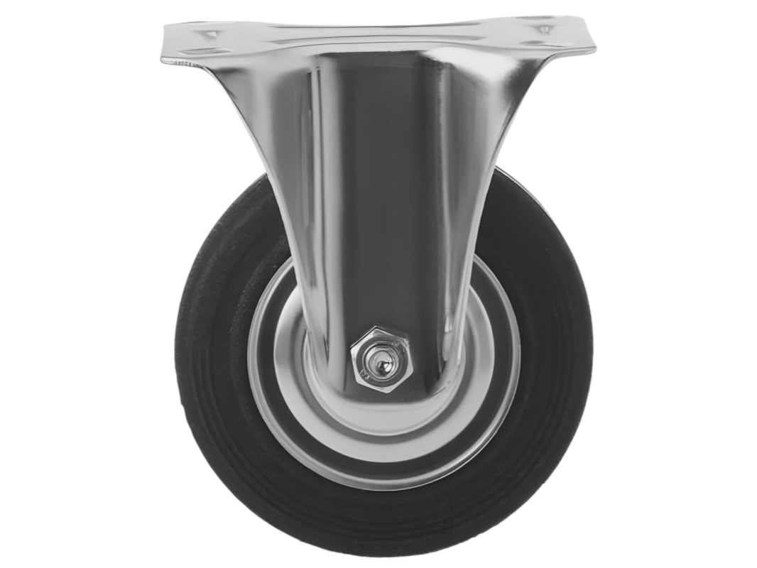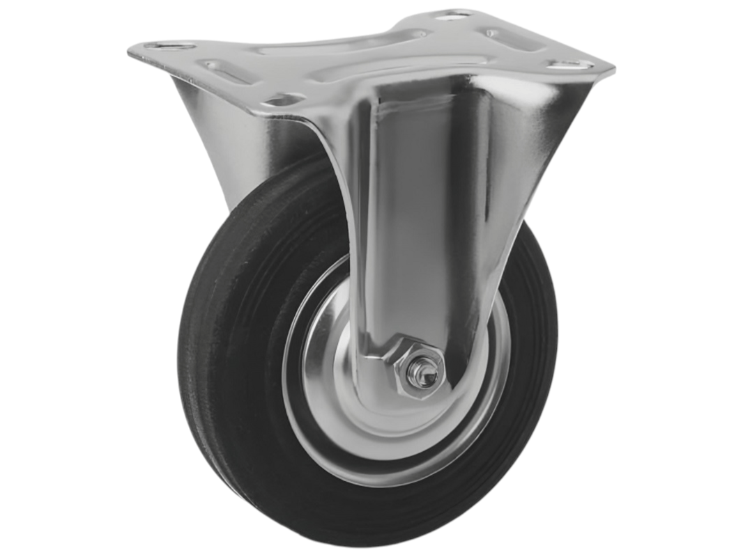 Эта модель неповоротных колёс с креплением доступна в семи вариантах, отличающихся диаметром от 75 до 250 мм, и грузоподъёмностью от 50 до 210 кг.