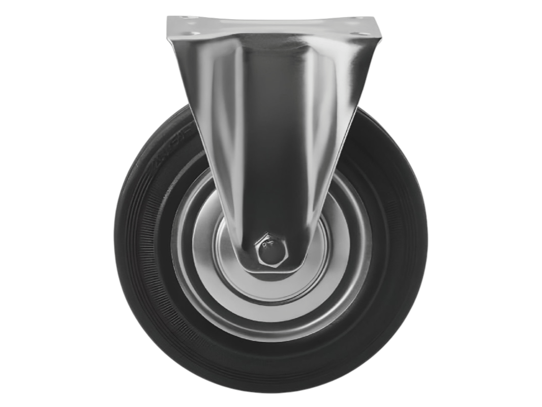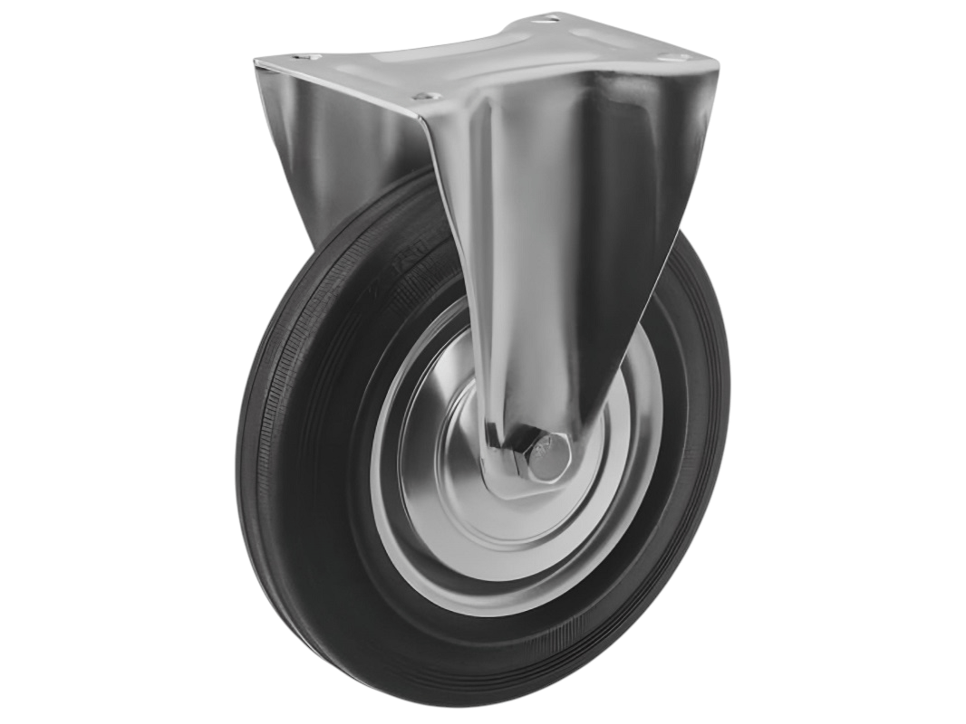 Эта модель неповоротных колёс с креплением доступна в семи вариантах, отличающихся диаметром от 75 до 250 мм, и грузоподъёмностью от 50 до 210 кг.