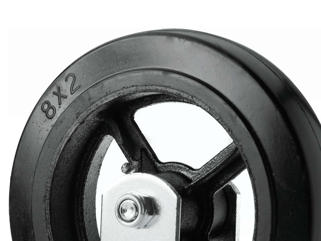 Колесо чугунное большегрузное с неповоротной площадкой и литым резиновым слоем FCD 85 (250 мм/350 кг)
