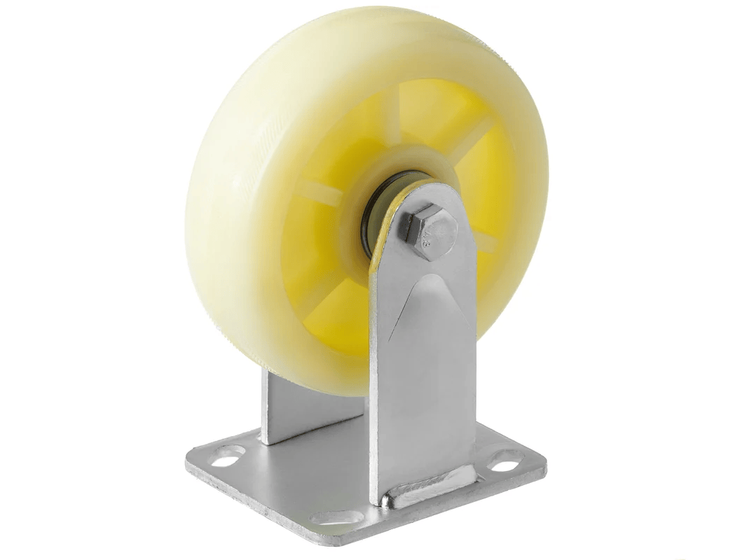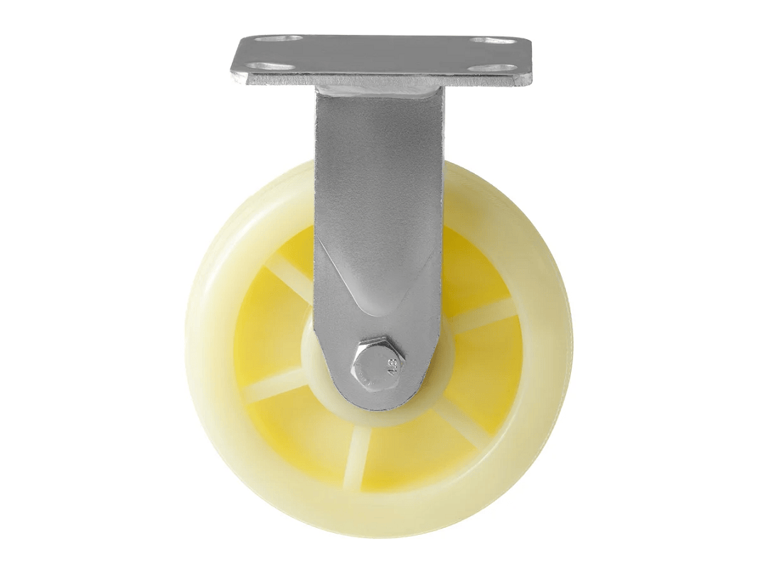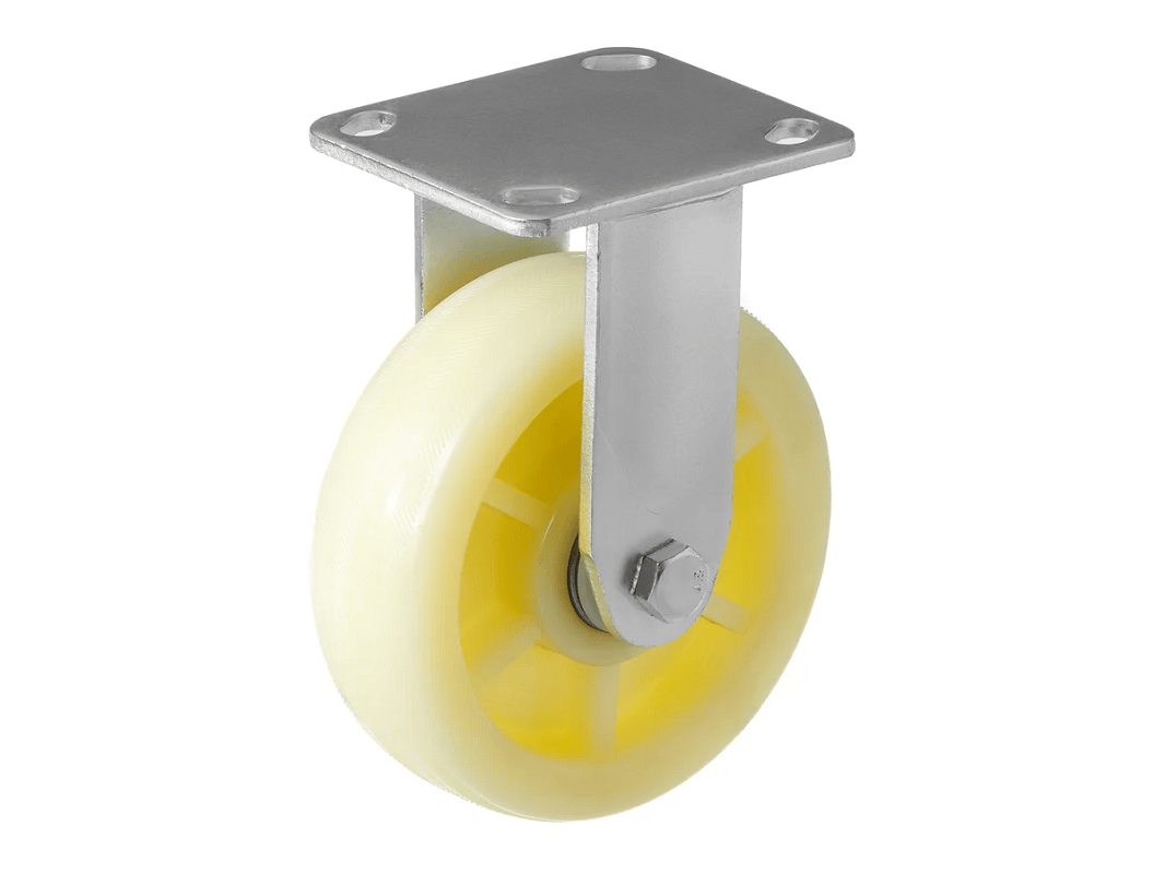 Нейлоновые колеса часто используются в торговых центрах и медицинских учреждениях благодаря своим уникальным свойствам. Они устойчивы к износу даже при использовании на ровной поверхности, а оцинковка кронштейна защищает их от коррозии. Эти колеса могут использоваться в агрессивной химической среде, такой как моющие средства и масла.