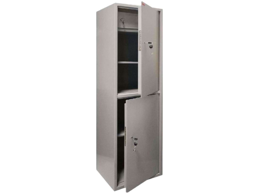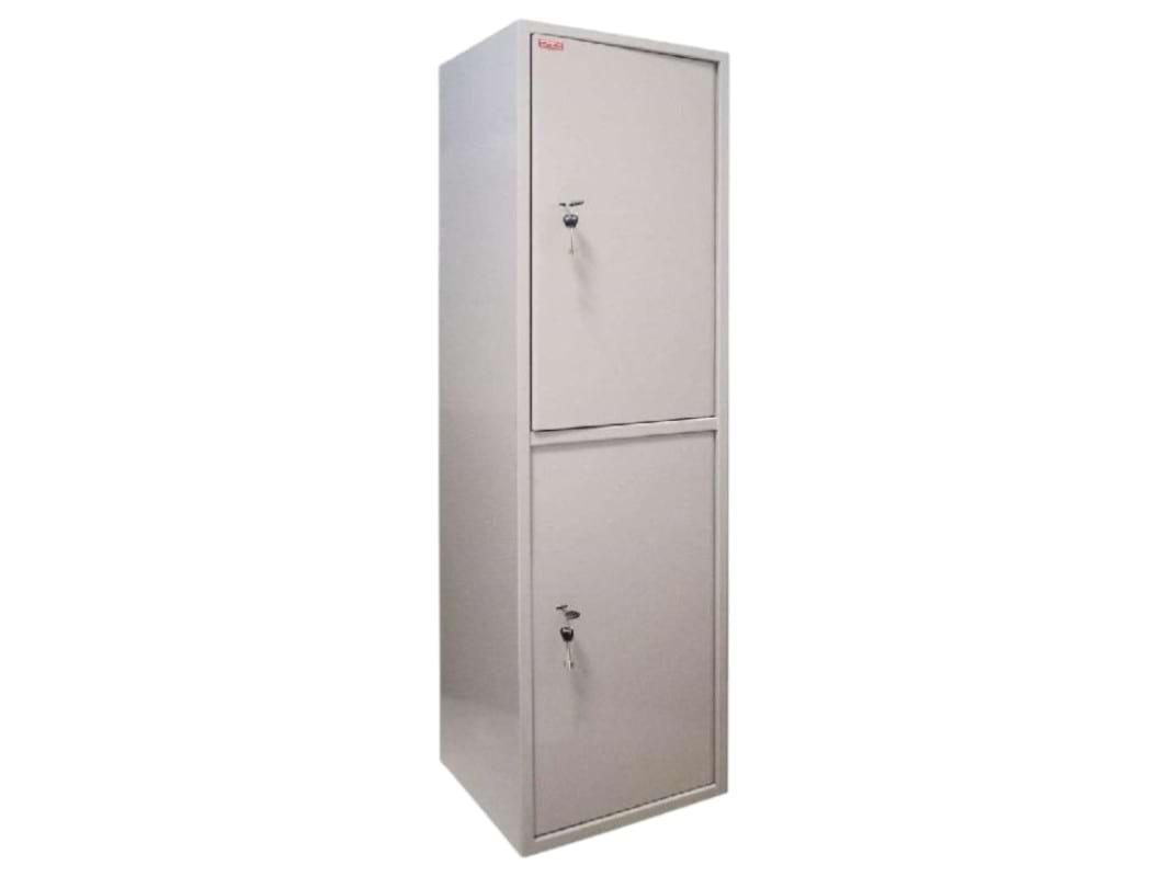 Современные металлические шкафы стали популярной альтернативой деревянным. В верхней части шкафа расположен трейзер — дополнительный отсек, закрывающийся на отдельный ключ. Для дополнительной безопасности внутренние петли усилены.