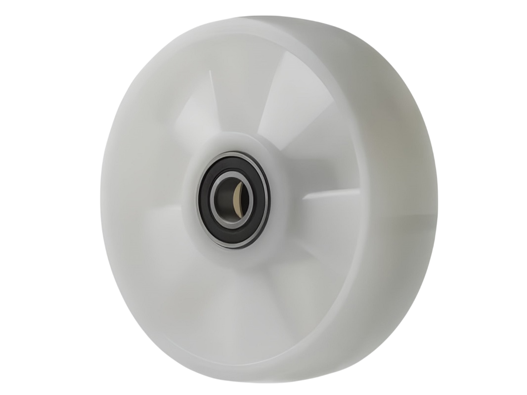 - Нейлон обладает высокой устойчивостью к износу и механическим повреждениям, что обеспечивает длительный срок службы колеса, даже в условиях интенсивных нагрузок;