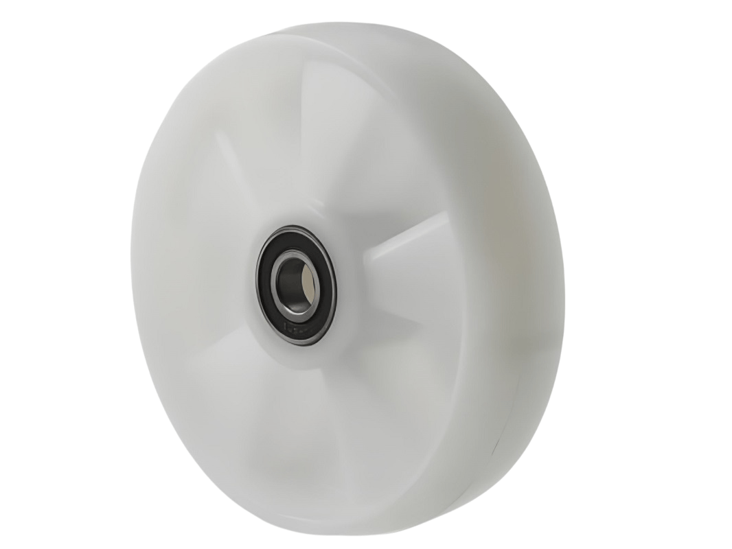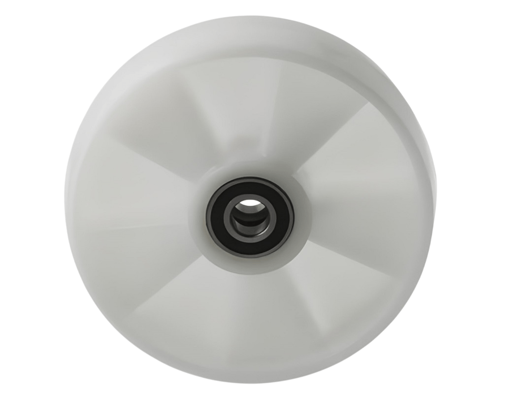 - Нейлон обладает высокой устойчивостью к износу и механическим повреждениям, что обеспечивает длительный срок службы колеса, даже в условиях интенсивных нагрузок;