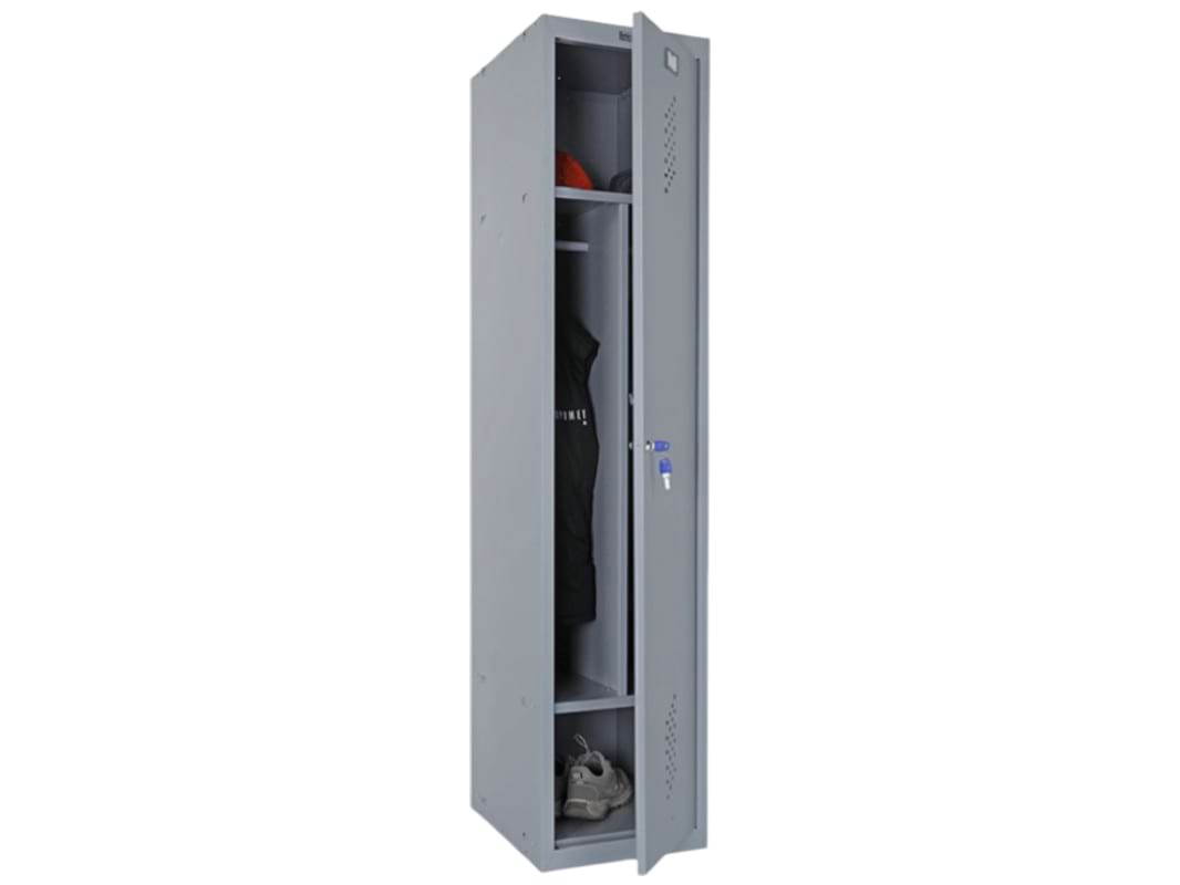 Односекционный усиленный металлический шкаф ML 11-40D — шкаф предназначен для хранения разной одежды. Отличительной чертой является жесткий корпус за счет усиленной сварной рамы. Простая и быстрая сборка при помощи зацепов, саморезов и винтов. В конструкции шкафа используется качественный ключевой замок от компании «Промет» на 2000 комбинаций. Оказываем услуги по сборке и установке.