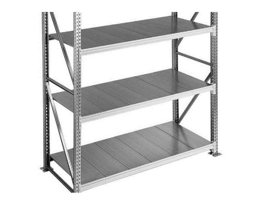 Настил металлический используется в грузовых стеллажах, устанавливается на балку (ригель). Отличаются, как и балки, максимальной длиной и шириной. Настил специально изготовлен под размеры стеллажа, что позволяет установить его без дополнительного инструмента. Металлический настил — это необязательный элемент грузового стеллажа, можно обойтись и без него или заменить его на ДСП.
