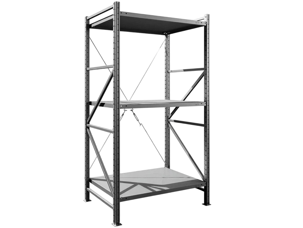 Стеллаж среднегрузовой MS U с высотой 2000 мм и полками длиной 1000 мм. Глубина стеллажа 800 мм с максимальной нагрузкой на уровень не более 200 килограмм. Максимальная нагрузка на всю секцию не более 1000 килограмм, при использовании дополнительных комплектов раскосов максимальная нагрузка на одиночную секцию увеличивается до 2000 килограмм. Для такой серии стеллажей минимальное количество полок с высотой до 2 метров составляет 3 штуки, с высотой более 2 метров минимальное количество полок 4 штуки. Допускается установка нижнего яруса не выше 130 мм от пола, с максимальным расстоянием между полками не более 700 мм. Для обеспечения устойчивости стеллаж необходимо крепить к полу с помощью анкерных болтов, минимальная длина должна 100 мм.