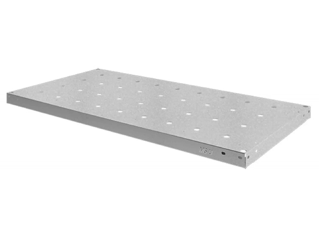 Полки MS U перфорированные используются для стеллажей этой же серии. Отличаются разными размерами, устанавливаются на зацепы, которые не требуют дополнительного крепления.