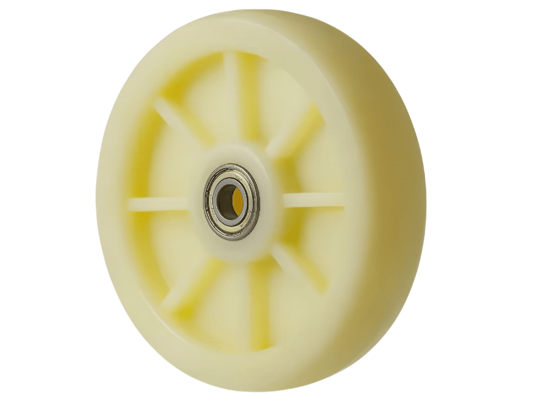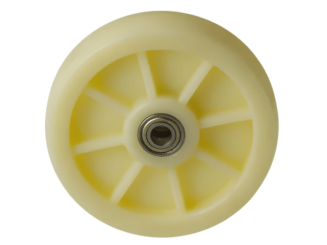 Нейлоновые колёса широко применяются в торговых центрах и медицинских учреждениях благодаря своим исключительным характеристикам. Они не изнашиваются при использовании на ровной поверхности, а оцинковка кронштейна обеспечивает надёжную защиту от коррозии. Эти колёса могут использоваться в условиях агрессивной химической среды, например, с моющими средствами или маслами.