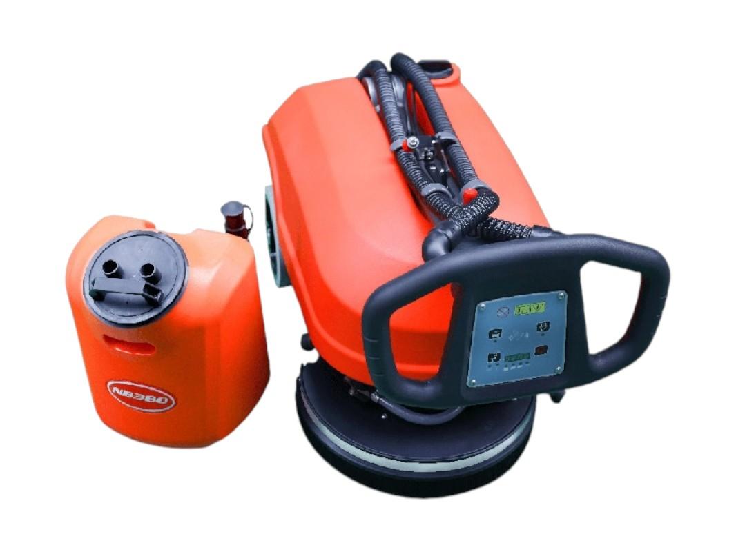 Поломоечная машина NB380 — это небольшая техника с шириной щетки 380 мм, оснащена бесщеточным и вакуумным двигателем. Машина изготовлена из высококачественных материалов, алюминиевая литая рама скребка, повышенная защита от ржавчины. Техника способна работать на одном заряде аккумулятора 1,5-2 часа. Для более удобного и компактного хранения оснащена складной ручкой. Используется на небольших складах, в торговых центрах, мастерских и других местах. Удобная ручка с защитой от влаги, запуск производится нажатием всего одной кнопки, возможно регулировать объем воды. Машину легко обслуживать, разборная конструкция. Максимальный объем бака для чистой и грязной воды 10 литров.