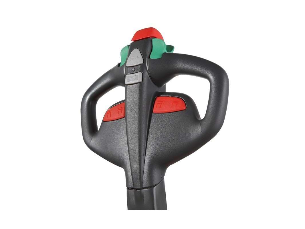 Аккумулятор повышенной ёмкости обеспечивает до 8 часов непрерывной работы. Безопасность оператора во время работы гарантируют электромагнитный тормоз, высокая устойчивость конструкции и защитный экран. Мощная подъёмная станция и жёсткие вилы обеспечивают комфортный подъём груза.