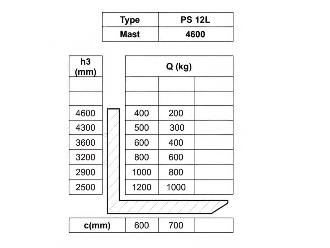 Это самый компактный и лёгкий электрический штабелер в линейке PS, предназначенный для работы на складах с невысокими потолками и высокой интенсивностью эксплуатации. Он может транспортировать грузы любой тяжести, но не более 1200 кг.