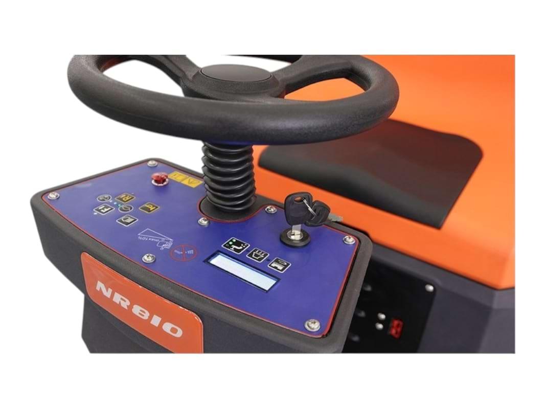 Поломоечная машина NR810 — это полноценная мощная машина с двумя щетками шириной 410 мм, оснащена бесщеточным тяговым и вакуумным двигателем. Машина изготовлена из высококачественных материалов с удобной ручкой и повышенной защитой от ржавчины. Техника способна работать на одном заряде аккумулятора 3-4 часа. Используется на складах, в торговых центрах, мастерских и других местах, самоходная машина с удобным сиденьем для оператора. Удобная ручка с защитой от влаги, запуск производится с помощью ключа (в комплекте 2 штуки), возможно регулировать объем воды. Машину легко обслуживать, разборная конструкция. Максимальный объем бака для чистой и грязной воды 120 литров. Для эффективного сбора воды увеличена ширина водосборной щетки до 810 мм. Техника отличается высокой производительностью, мощной АКБ и большими баками с водой.