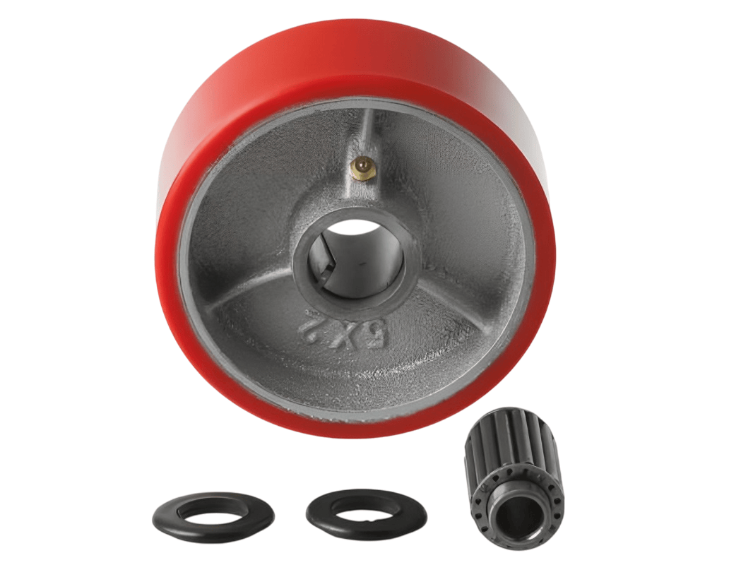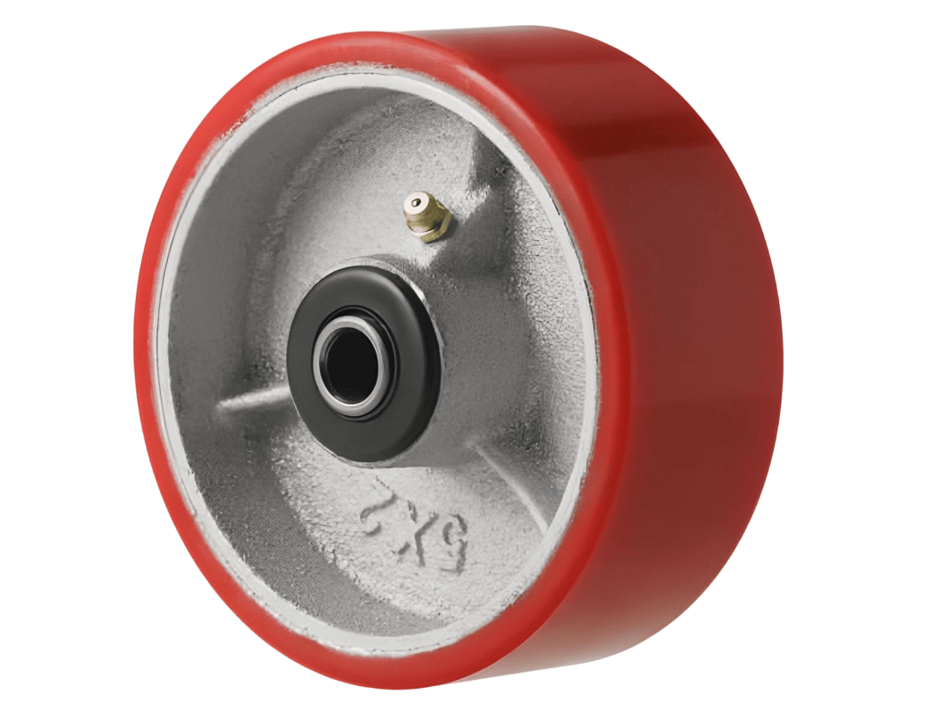 Колеса изготовлены из полиуретана, который надёжно соединён с чугунным ободом методом вулканизации. Это исключает риск отслоения шины. Обод оснащён дополнительными рёбрами жёсткости, а в оси установлен роликовый подшипник в стальной обойме. Колесо легко вращается, но при этом устойчиво к боковым и ударным нагрузкам.