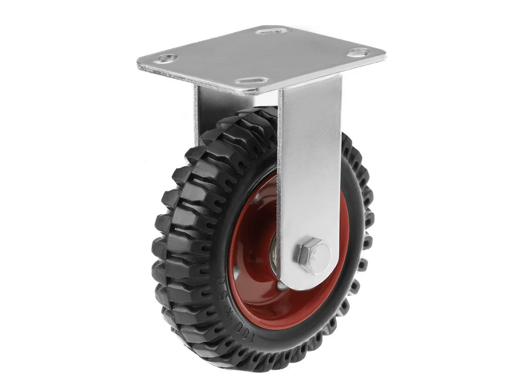 Колесо литое с протекторной резиной, металлическим ободом и шариковым подшипником с неповоротной площадкой PF 160 (160 мм/400 кг)