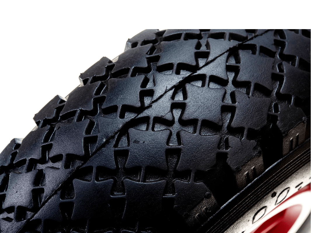 В отличие от литых колёс, эти обладают высокой амортизацией, что обеспечивает проходимость техники по любой поверхности: гравию, песку, земле, грязи, асфальту и т. д. Благодаря воздушной подушке они способны преодолевать неровности и препятствия, такие как бордюры и насыпи, сохраняя плавность хода, манёвренность и безопасность транспортировки грузов.