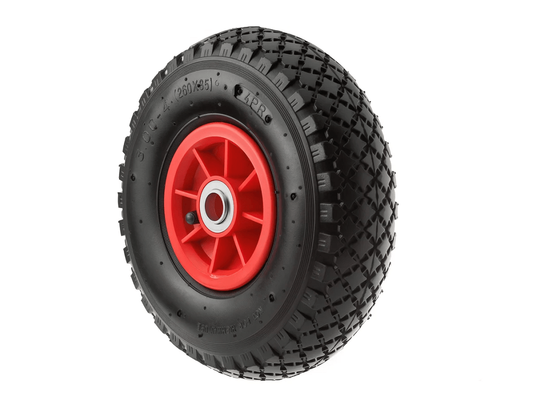 Колесо пневматическое 3.00-4 с симметричной ступицей, пластиковым ободом и шариковым подшипником, ось 20 мм PR 1806-20 (260 мм/150 кг)