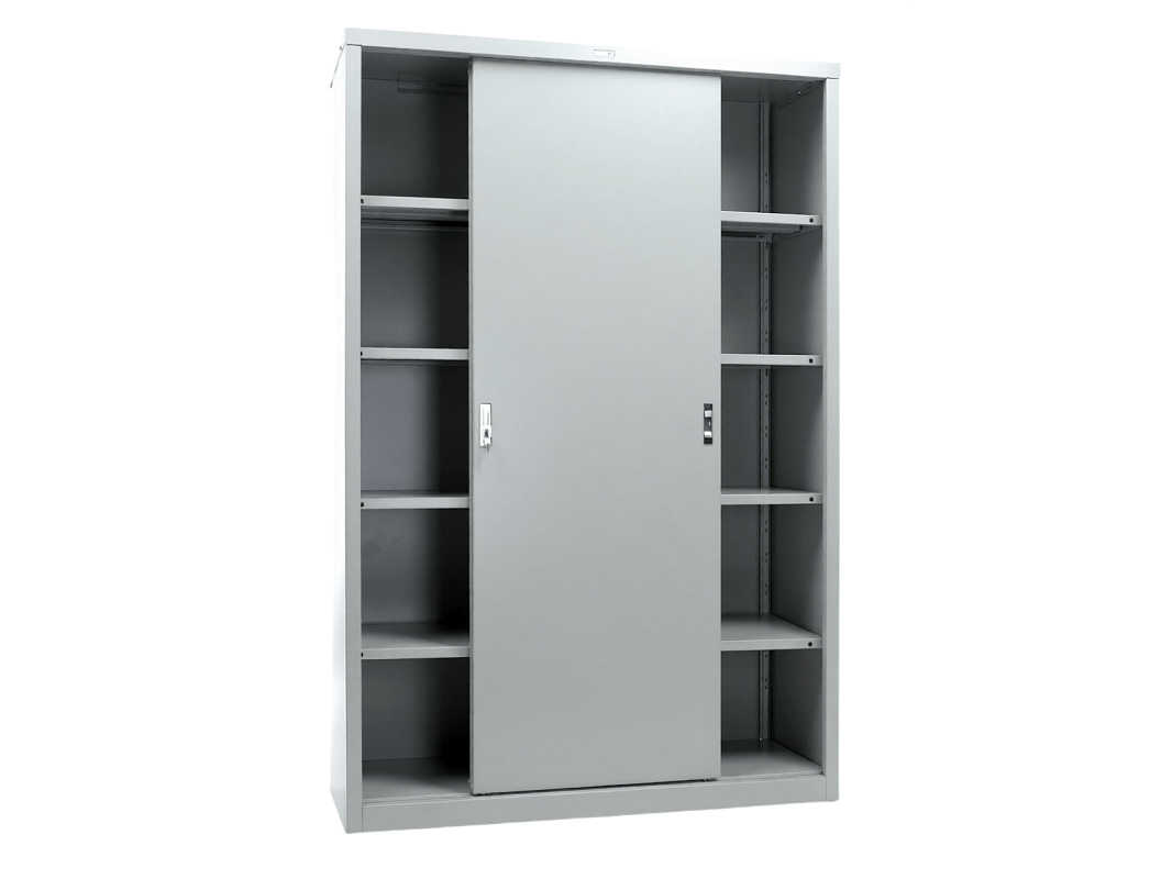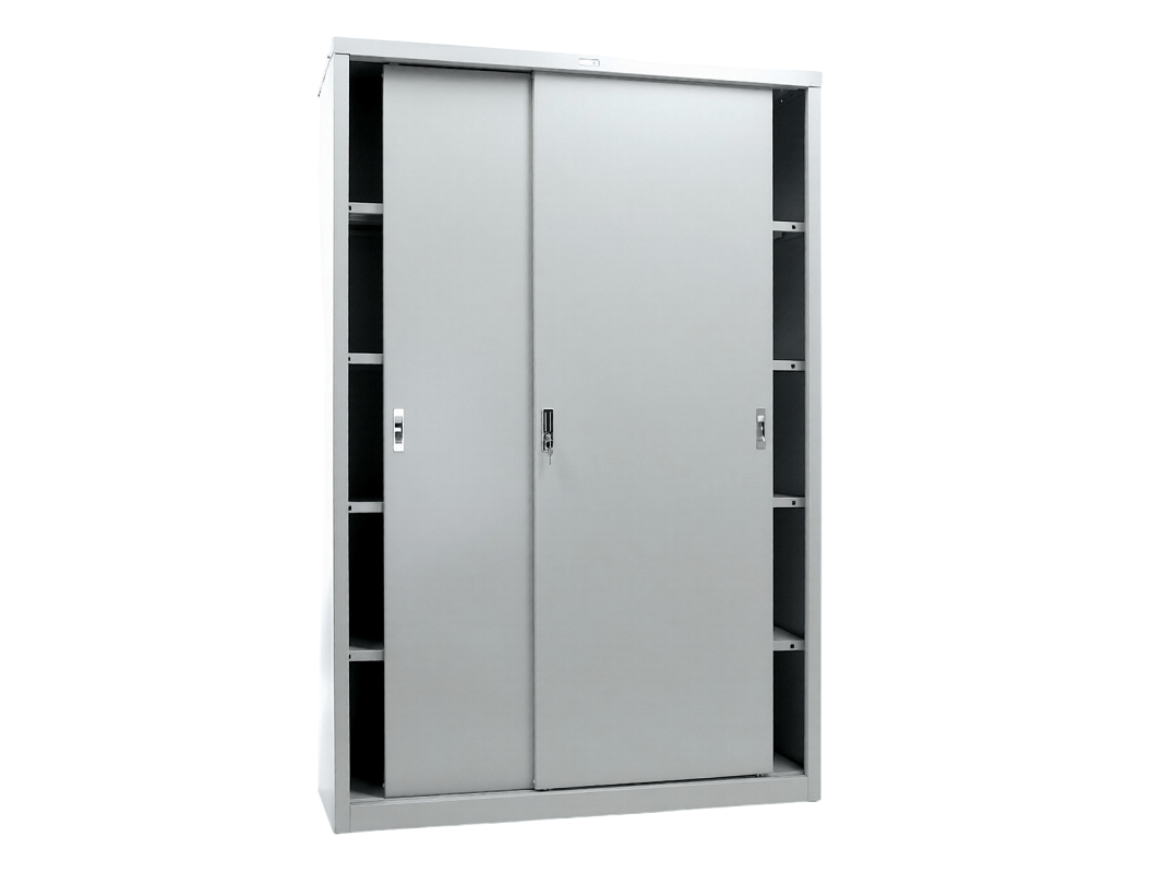 Серия AMT выделяется благодаря уникальному роликовому механизму. Он обеспечивает бесшумную и плавное работу дверей, а также их надежность. Ролики расположены на верхней части дверей, что предотвращает их загрязнение. Усиленное основание шкафа с двумя ребрами жесткости добавляет конструкции дополнительную прочность.