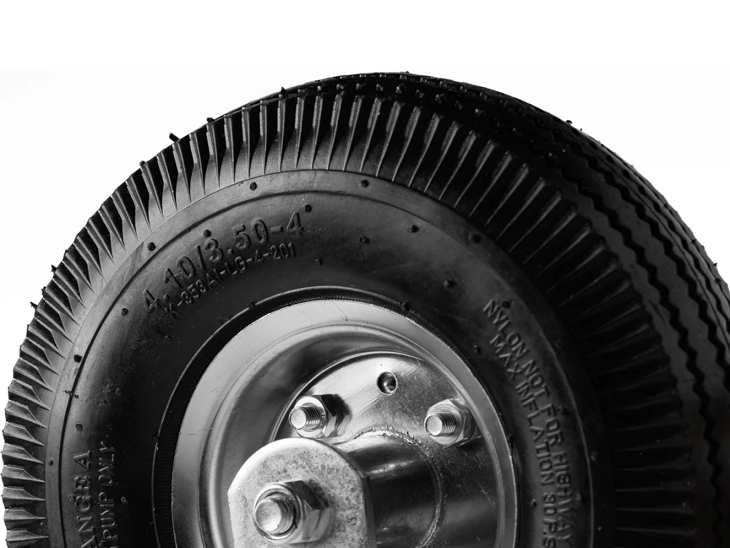 Колесо пневматическое 3.50-4 с неповоротной площадкой и стальным ободом PRF 85 (266 мм/130 кг) оснащено прессованным стальным ободом, шарикоподшипником и платформенным креплением. Оно обеспечивает устойчивое движение тачки по неровным поверхностям. Колесо выдерживает большие нагрузки, не деформируясь при максимальной нагрузке. Его легко установить и при необходимости отремонтировать.