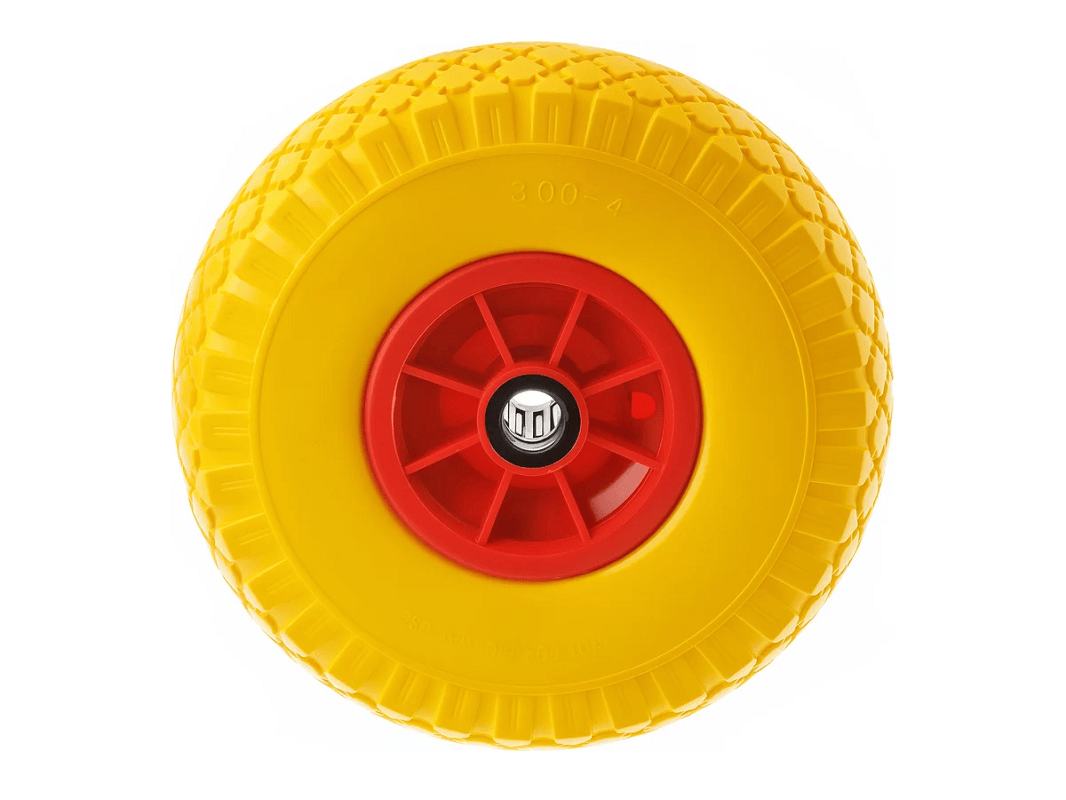Колесо пенополиуретановое 3.00-4 с симметричной ступицей, пластиковым ободом и роликовым подшипником, ось 20 мм PU 1807-20 (260 мм/120 кг)