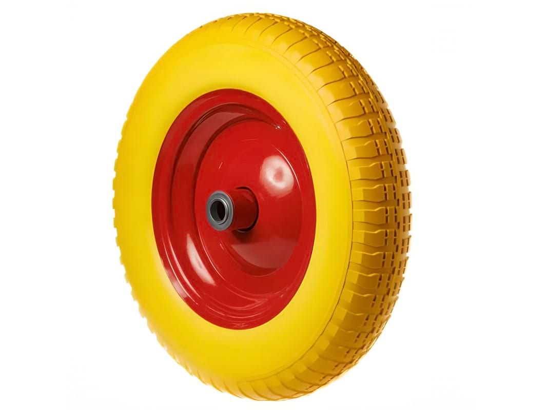 Колесо пенополиуретановое 3.25/3.00-8 с симметричной ступицей, металлическим ободом и шариковым подшипником, ось 20 мм PU 2400-20y (360 мм/160 кг) отличаются высокой прочностью и долговечностью. Их шина устойчива к проколам, но даже если это произошло, колесо не выйдет из строя сразу, а будет пружинить.
