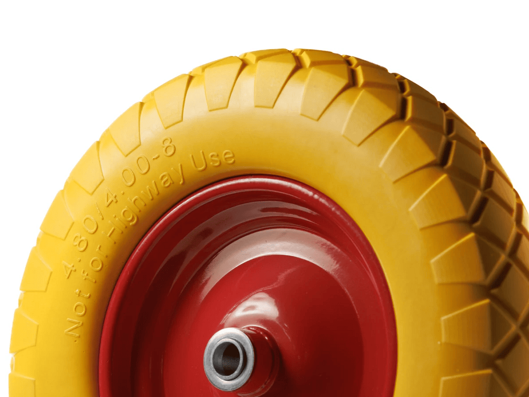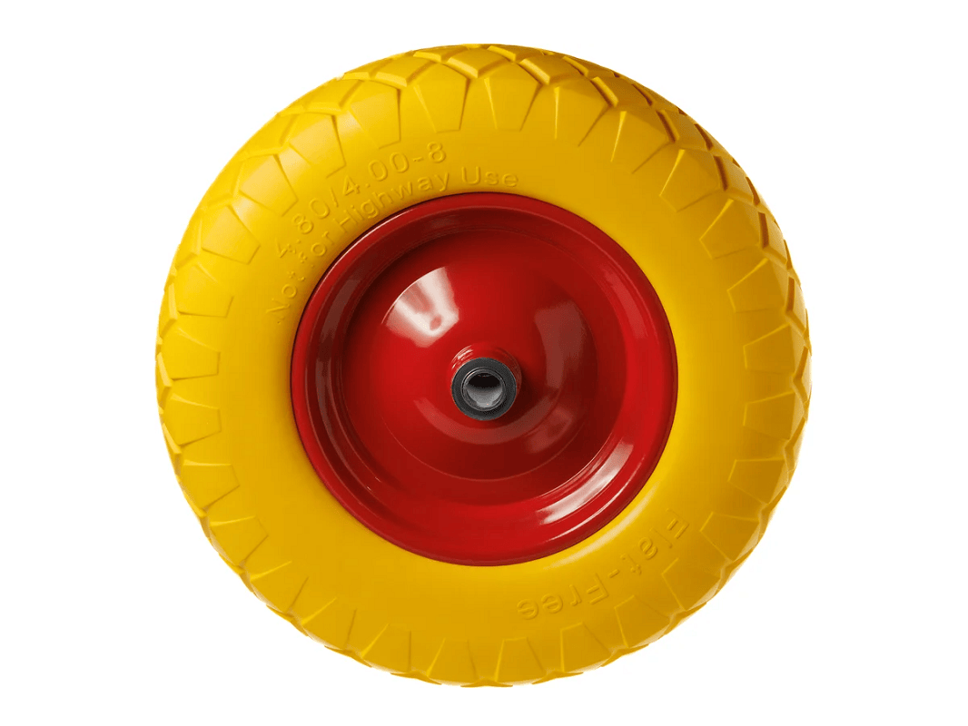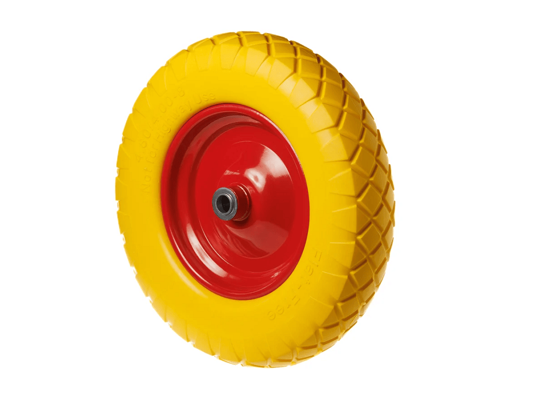 Колесо пенополиуретановое 4.00-8 с симметричной ступицей, металлическим ободом и шариковым подшипником, ось 20 мм PU 3000-20 (380 мм/160 кг) отличаются высокой прочностью и долговечностью. Их шина устойчива к проколам, но даже если это произошло, колесо не выйдет из строя сразу, а будет пружинить.