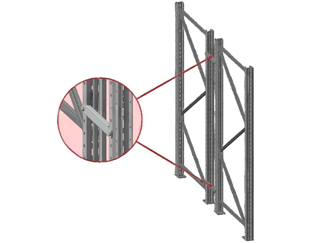 Длина швеллеров зависит от расстояния между рядами стеллажей. Их крепят болтами или замками. Расположение швеллеров выбирают, учитывая расчеты нагрузки и особенности конструкции стеллажей.