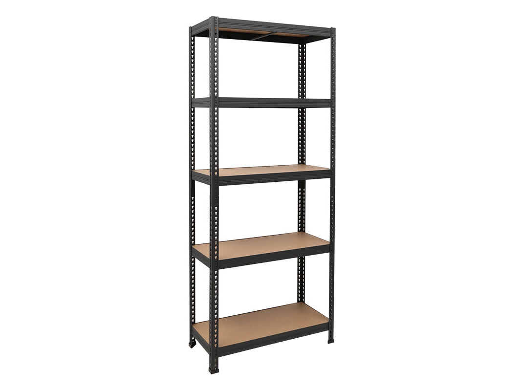 Стеллаж SBL 200KD/120x40/5 имеет небольшие габариты с 5 ярусами для хранения. Собирается без помощи болтов, только на зацепах. Основной инструмент для сборки — это киянка (молоток с мягкой головкой). Стойка имеет шаг перфорации 25 мм, что позволяет установить полки на удобную для вас высоту.