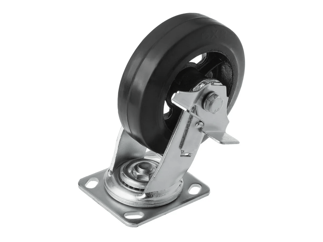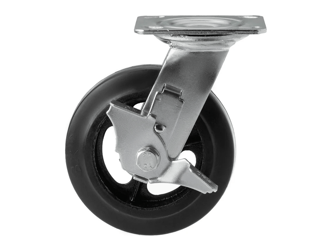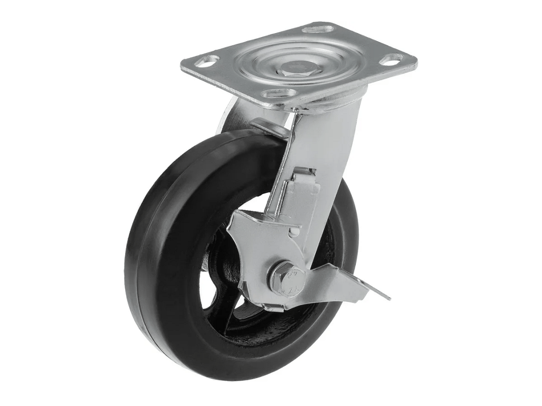 Колесо чугунное большегрузное с поворотной площадкой и тормозом и литым резиновым слоем SCDB 63 (150 мм/230 кг)