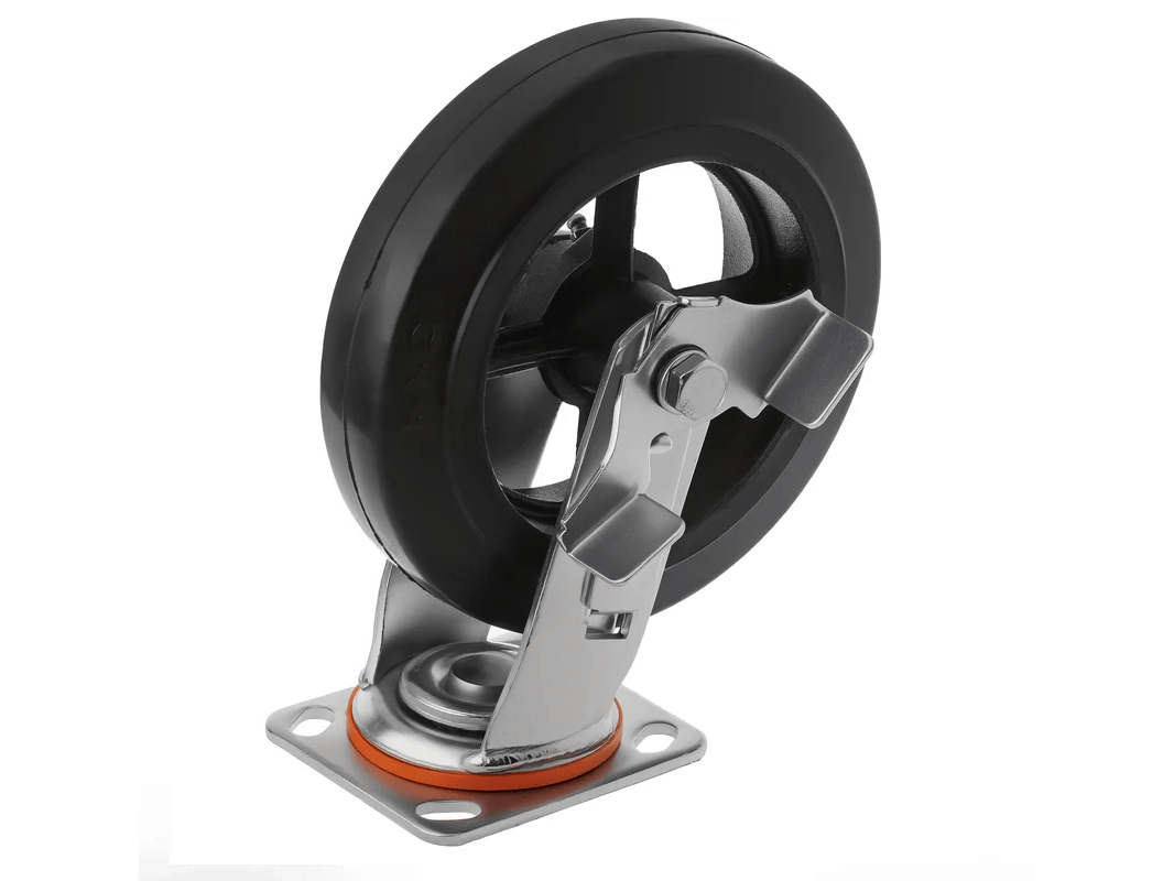 Колесо чугунное большегрузное с поворотной площадкой и тормозом и литым резиновым слоем SCDB 80 (200 мм/280 кг)
