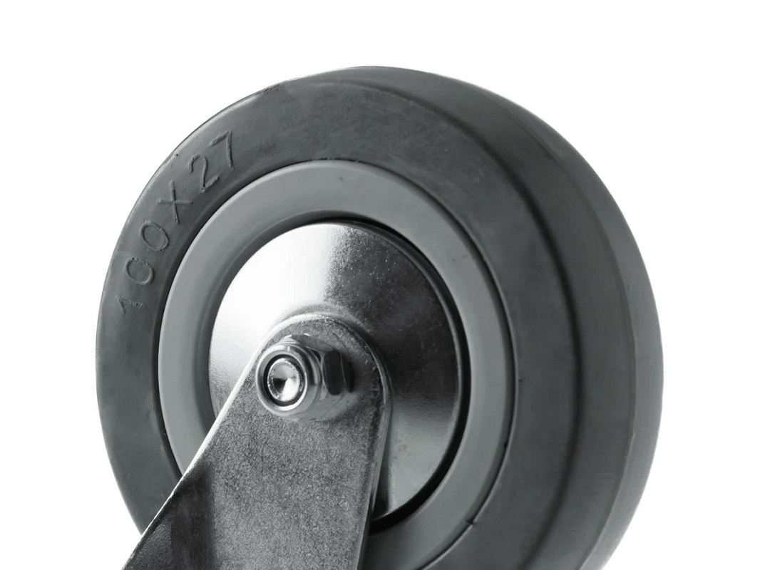 Шинка из термопластичной серо-голубой резины обеспечивает тихий ход, поглощает вибрацию и не оставляет следов на полу. Обладают хорошими ходовыми качествами и манёвренностью. Подходят для использования в условиях строгого соблюдения санитарно-гигиенических норм, так как легко очищаются от загрязнений. Температурный режим применения: от -10С до +50С.