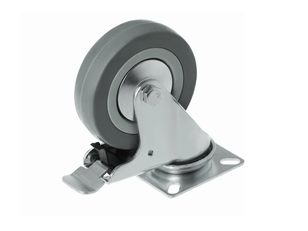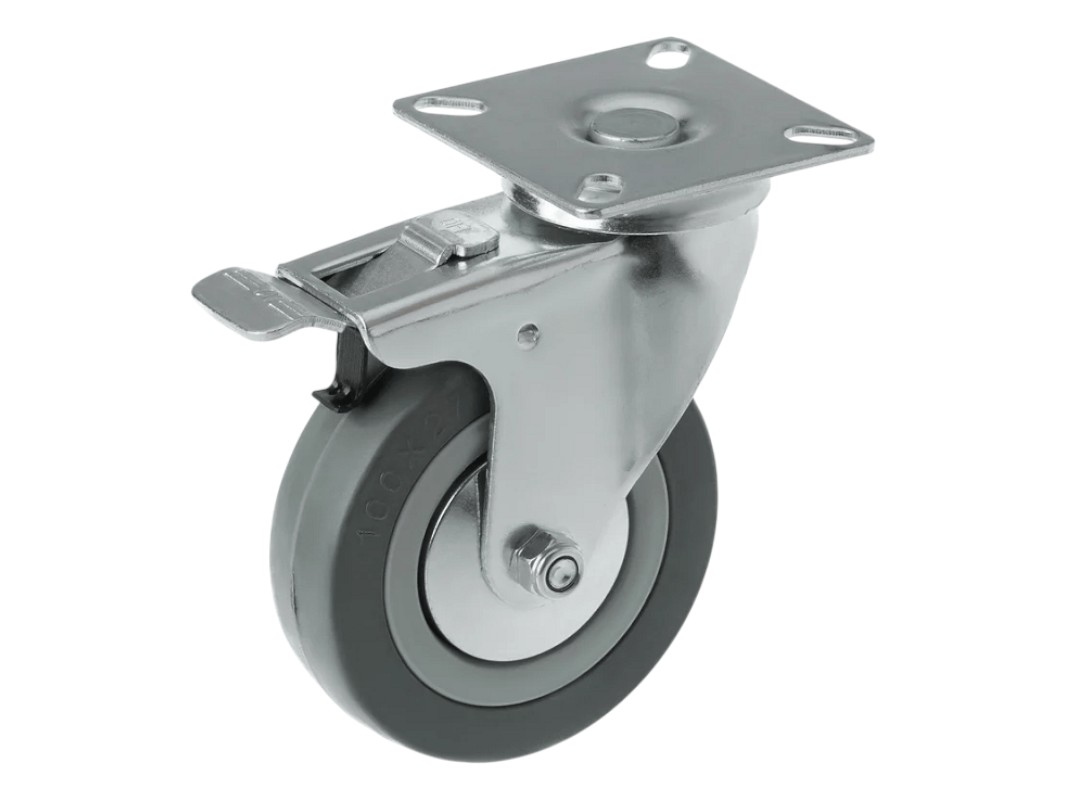 Ножной тормоз со стальным язычком позволяет надёжно фиксировать технику на месте. Эти колёса идеально подходят для небольших нагрузок и устанавливаются на медицинское, торговое, лабораторное и офисное оборудование, а также на мебель и технику, эксплуатируемую в закрытых помещениях.