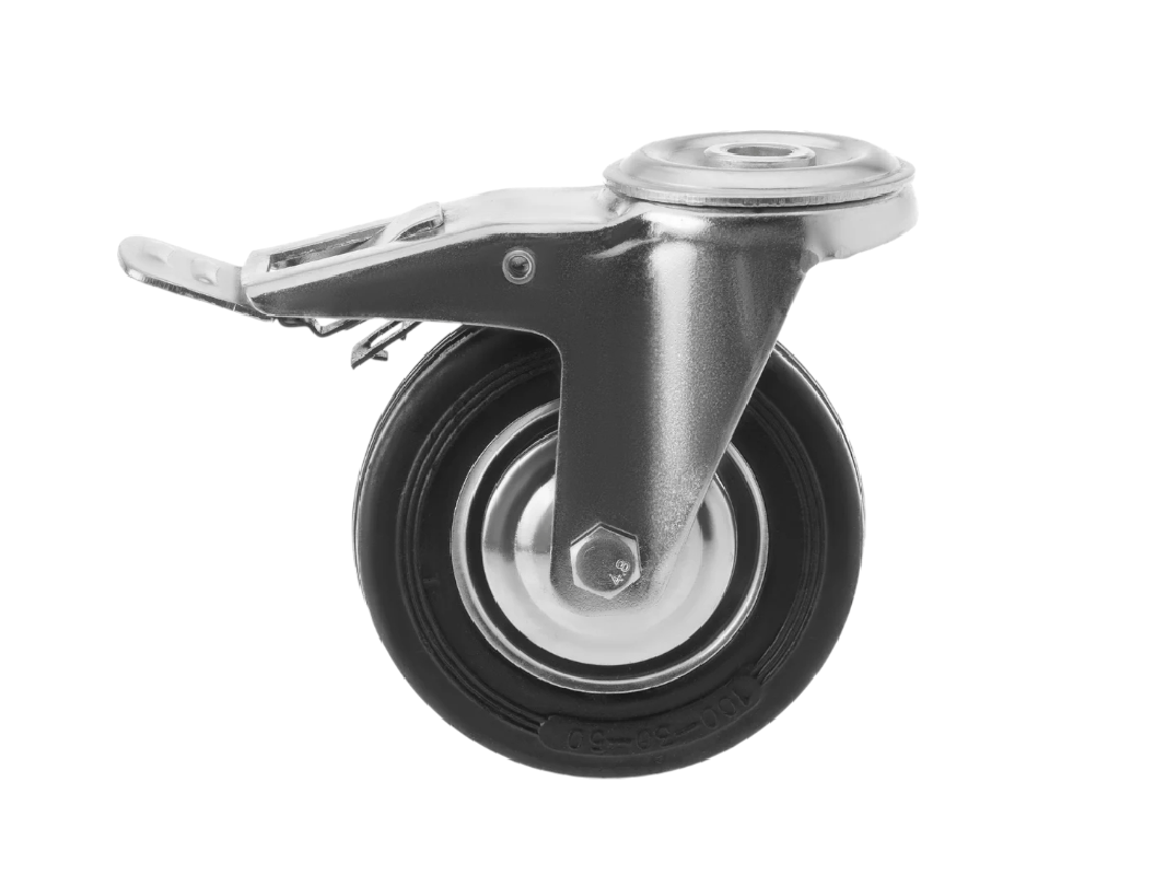 Колесо промышленное под болт М10 и тормозом SChb 93 предназначено для установки на различные виды техники: платформенные тележки, мусорные контейнеры, промышленное оборудование, строительные вышки и другие. Благодаря этому устройству техника становится более маневренной и удобной в управлении.