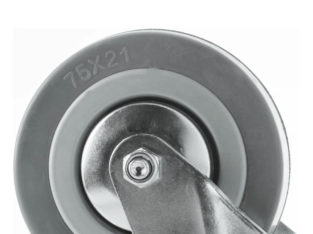 Как и вся аппаратная серия, эти колеса отличаются серым цветом и небольшой высотой вместе с опорой. Они обладают небольшой грузоподъемностью и небольшим диаметром, что делает их удобными для использования в закрытых помещениях.