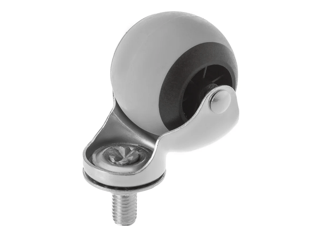 Колесо мебельное-шар с болтом М10 SCmt 25 (50 мм/30 кг) подходит для установки на тумбочки, столики, кресла, пуфики и т. п. Колесо подвижное и может вращаться вокруг оси на 360°. Небольшой размер и нейтральный дизайн придаёт аккуратный вид мебели, а обрезиненная поверхность исключает нежелательное скольжение. Сверху колеса имеется металлическая защита, которая препятствует физическому воздействию на колесо и его повреждению.