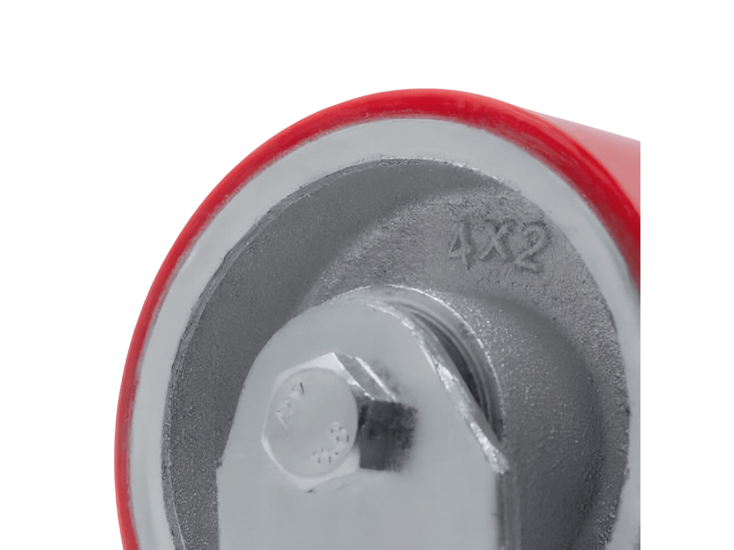 Шинка изготовлена из полиуретана, который надёжно соединён с чугунным ободом методом вулканизации, что исключает риск отслоения покрышки. Обод также оснащён дополнительными рёбрами жёсткости, а в оси установлен двойной шариковый подшипник, что обеспечивает стабильность и надёжность в эксплуатации.