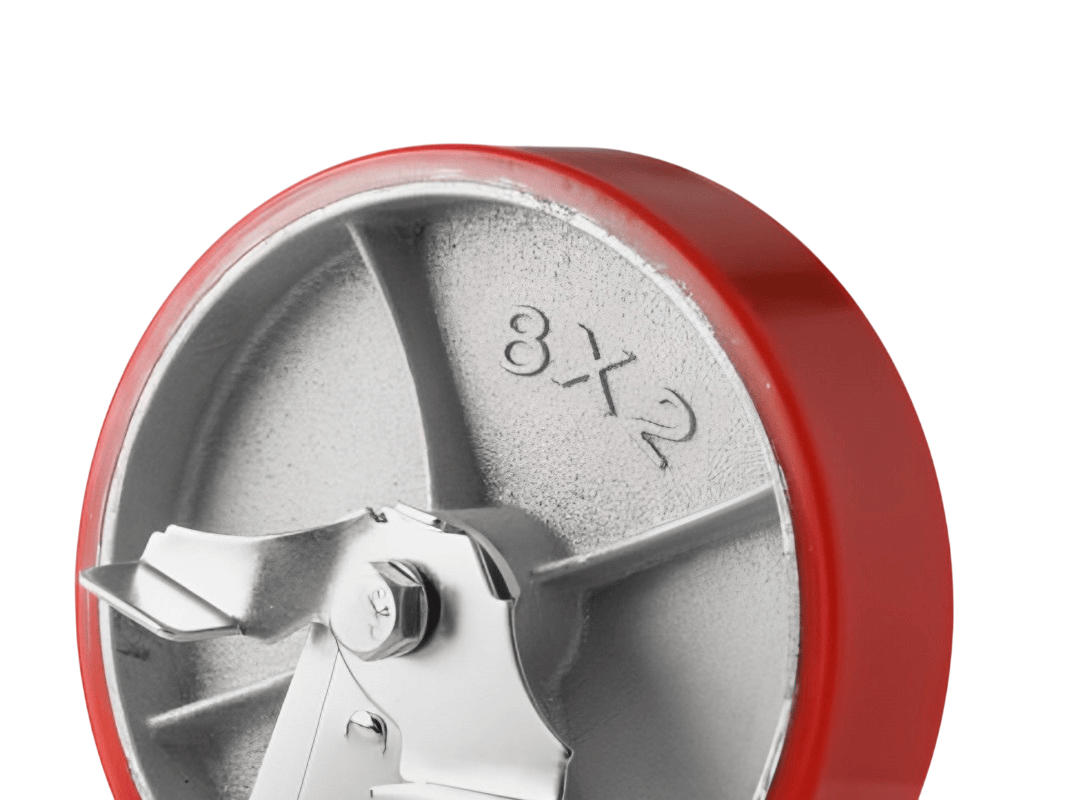 Шинка изготовлена из полиуретана, который надёжно соединён с чугунным ободом методом вулканизации, что исключает риск отслоения покрышки. Обод также оснащён дополнительными рёбрами жёсткости, а в оси установлен двойной шариковый подшипник, что обеспечивает стабильность и надёжность в эксплуатации.