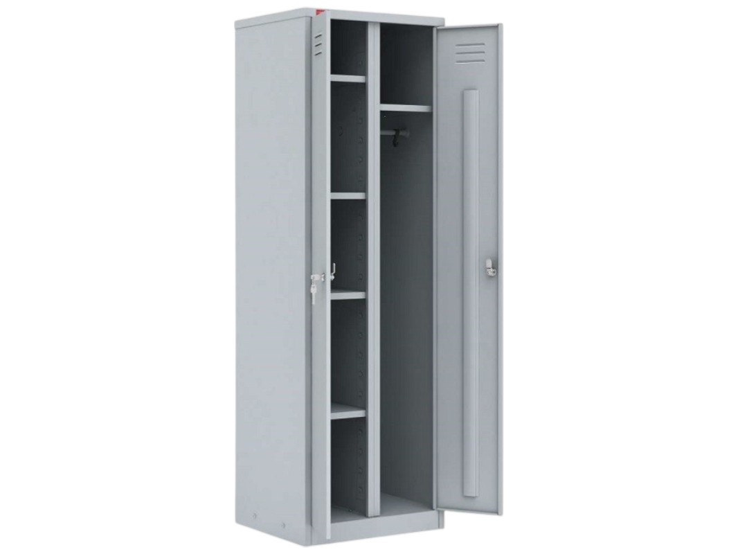 Уникальный шкаф, отличающийся своим строением. Внутри установлено 5 полок для хранения одежды, обуви, обмундирования и т.д. Также есть перекладина для верхней одежды. Из-за небольшой ширины в 600 мм шкаф подойдет для одного человека, что позволит ему комфортно распределить все свои вещи.