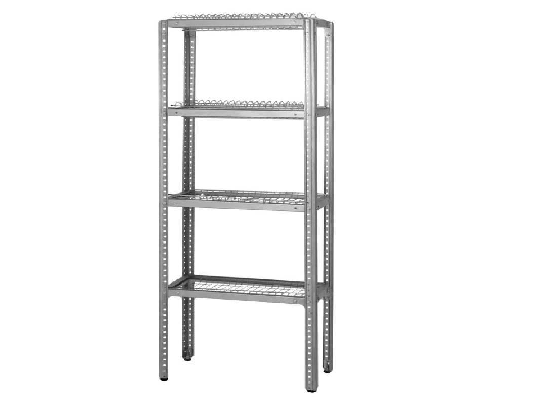 - Оцинкованный стеллаж легко очищается от загрязнений, что гарантирует его гигиеничность и долговечность;