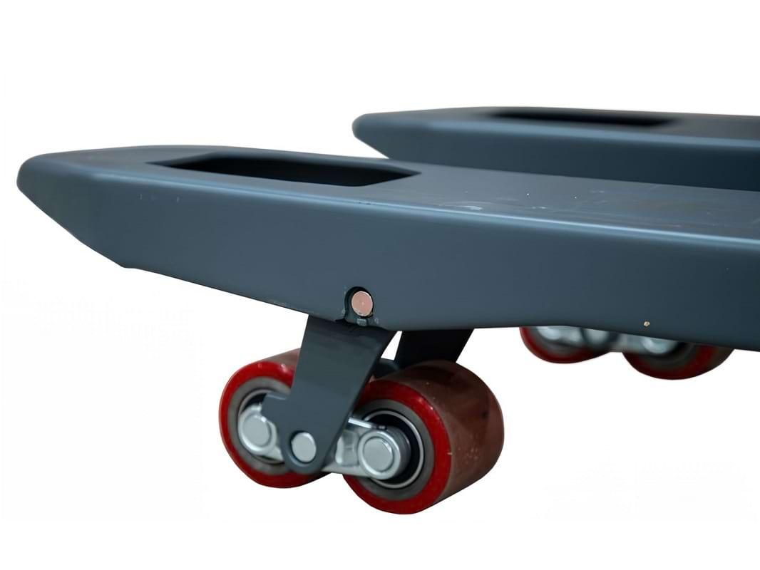 Колесо баланса, интегрированное в конструкцию тележки, способствует достижению плавного и стабильного хода, а также предотвращает раскачивание и опрокидывание груза. Это особенно важно при работе с крупногабаритными и тяжелыми предметами, где требуется высокая степень устойчивости и контроля.