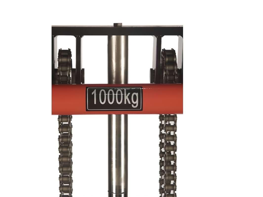 Выполненный из высококачественной стали, штабелёр оснащён усиленной цепью и конструкцией гидроузла, а также износостойкими поворотными колёсами. Техника безопасна в эксплуатации: сетчатый экран защищает оператора от подъёмных цепей, а тормозная система и колёса защищены кожухом. Складная педаль не мешает при работе, а удобная конструкция тормоза позволяет устанавливать и снимать его одним движением.