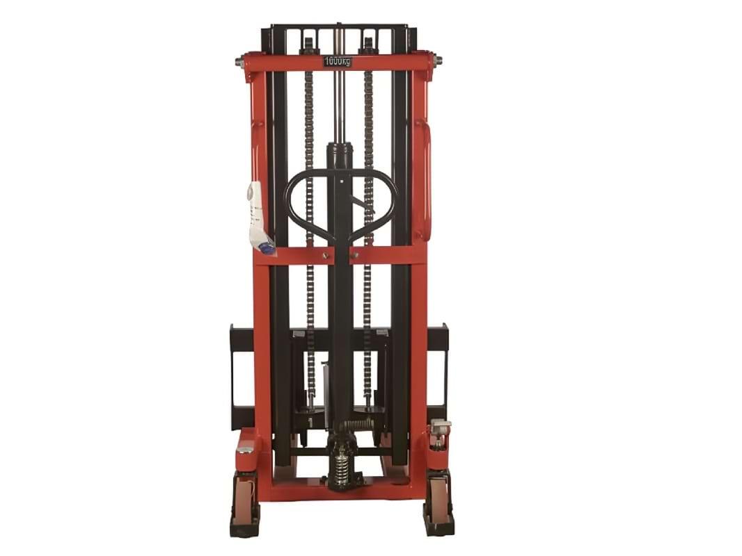 Штабелёр изготовлен из высококачественной стали, имеет усиленную цепь и конструкцию гидроузла, а также износостойкие поворотные колёса. Техника безопасна в эксплуатации: от подъёмных цепей оператора защищает сетчатый экран. Тормозная система и колёса также защищены кожухом. Складная педаль не мешает при работе, а удобная конструкция тормоза позволяет устанавливать и снимать его одним движением.