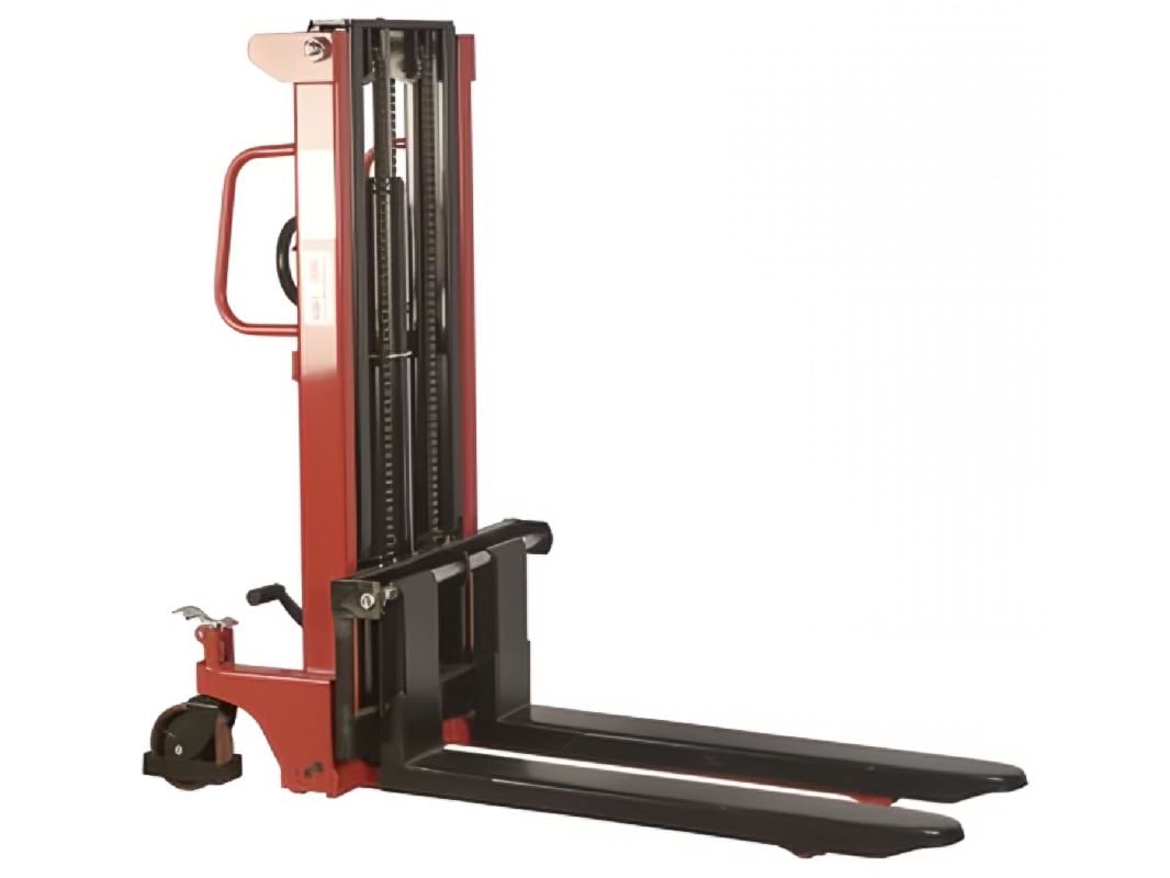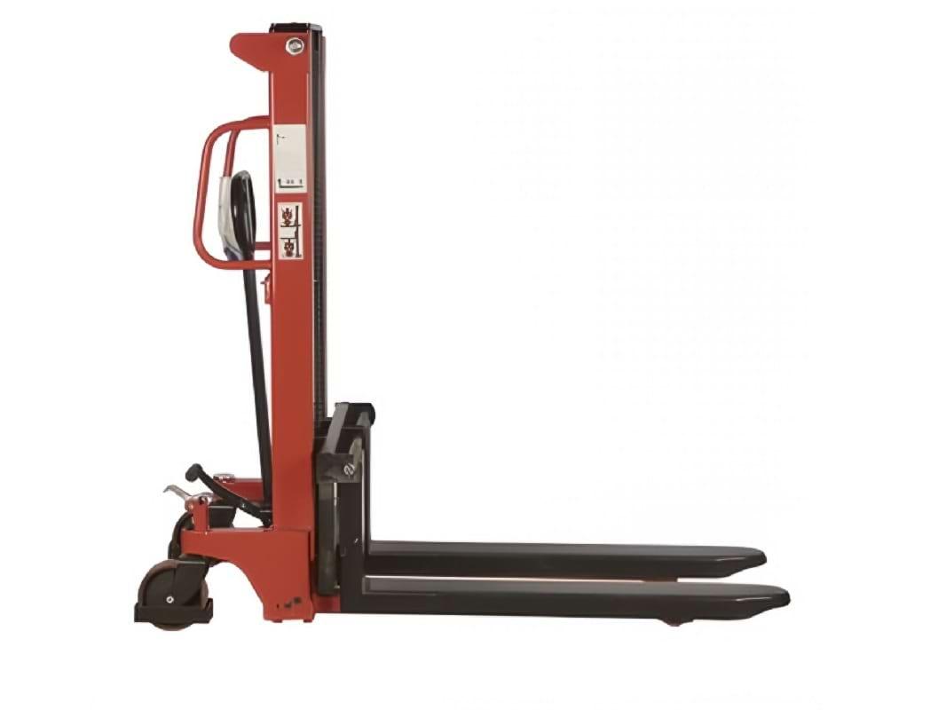 Вилы штабелёра усилены стальными швеллерами у основания и по всей длине, а толщина металла составляет 5 мм. Он предназначен для складов с низкой и средней интенсивностью работ, где оператор вручную приводит в действие гидравлические приводы и поднимает груз.