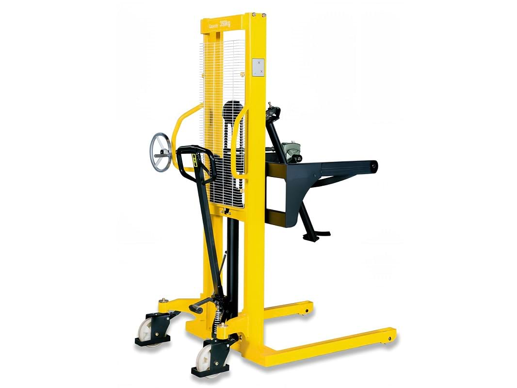 Штабелер может поднимать и удерживать бочку на заданной высоте, а благодаря специальному механизму способен наклонять и вращать её для более удобного переливания жидкостей. Именно эта функция отличает его от обычных гидравлических штабелеров.
