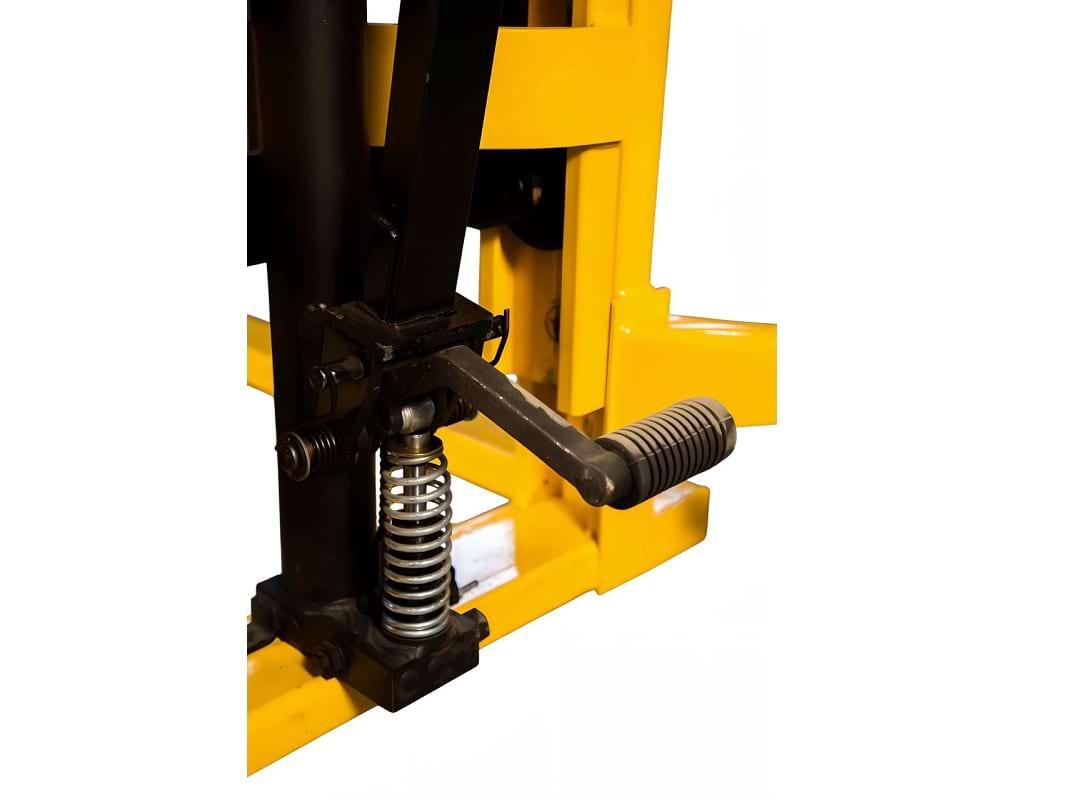 Штабелер может поднимать и удерживать бочку на заданной высоте, а благодаря специальному механизму способен наклонять и вращать её для более удобного переливания жидкостей. Именно эта функция отличает его от обычных гидравлических штабелеров.