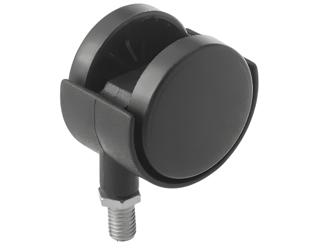 Колесо мебельное с болтом М8 TWT 50 (50 мм/25 кг) используются для установки на тумбочки, столики, кресла, пуфики и т. п. Устанавливается на болт М8 и имеет диаметр колеса 50 мм. Колесо подвижное и может вращаться вокруг оси на 360°.